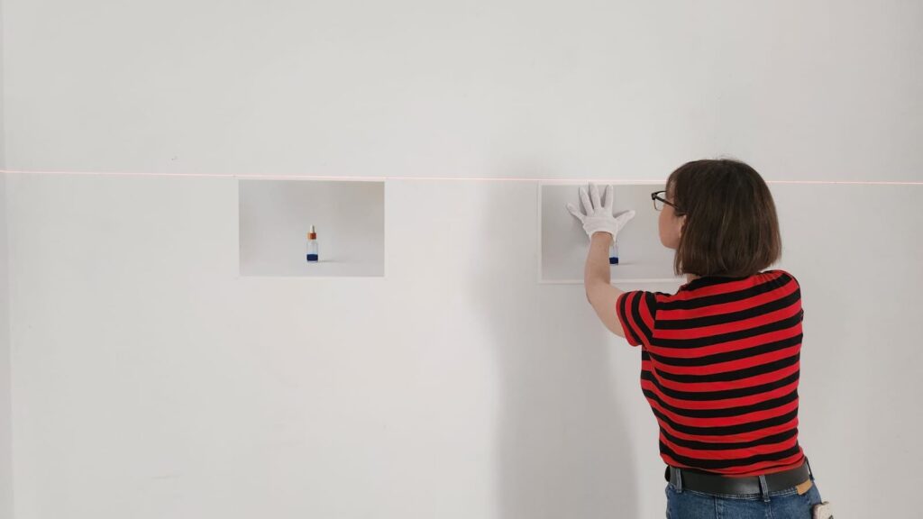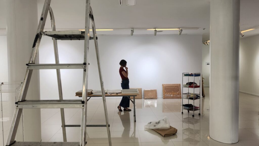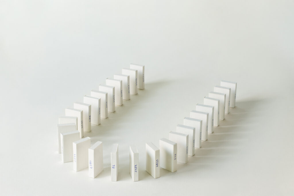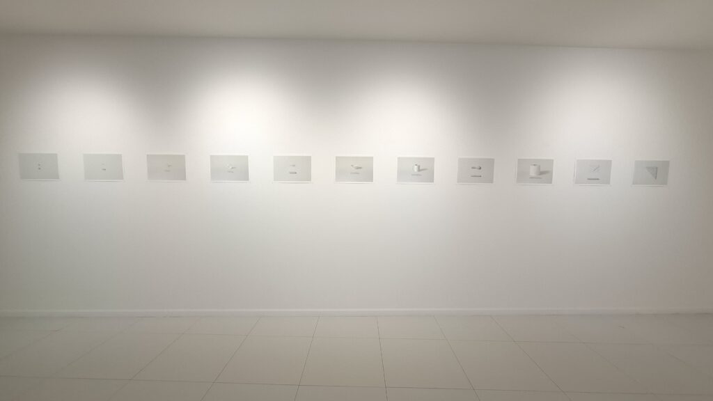 El título, tomado de una canción infantil para saltar a la comba, marca el ritmo de toda la exposición: repetición, precisión y una cierta dosis de azar. Con construcciones de papel y tinta diseñadas para ser fotografiadas, Romero fabrica certezas efímeras; la repetición implícita en su proceso amortigua los miedos y convierte el acto creativo en un ritual catártico.