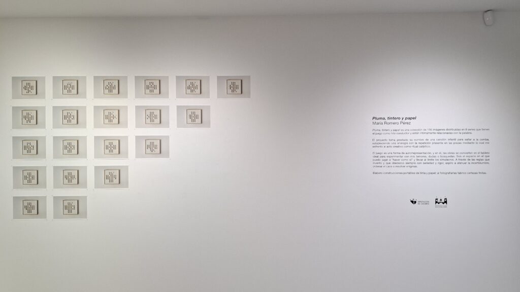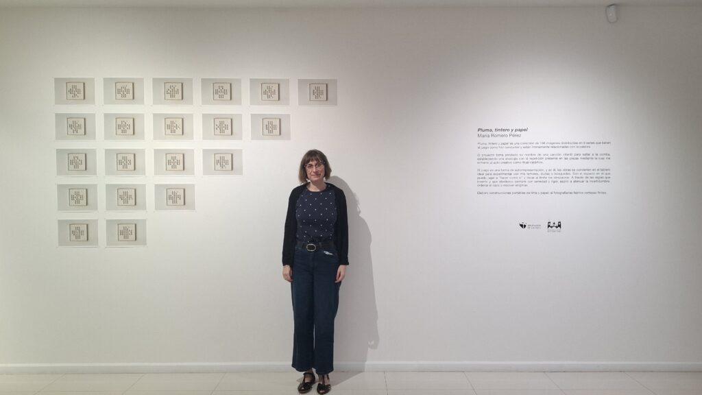 En Pluma, tintero y papel, María Romero Pérez convierte tinta, papel y fotografía en estrategias para atenuar la incertidumbre, ordenar el caos y resolver enigmas. Sus obras son, como ella misma explica, “el espacio en el que puedo jugar al ‘hacer como si’ y llevar al límite los simulacros”, un lugar donde inventar y obedecer reglas con seriedad para explorar temores, dudas o búsquedas.