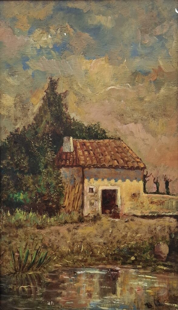 Sus pinturas se centran en paisajes cercanos y bodegones de flores, temas cotidianos abordados con una pincelada suelta y viva. El uso de soportes poco habituales, como el latón o el cobre, y su atención constante a la luz y al color conectan su trabajo con una sensibilidad próxima al impresionismo, poco frecuente en el contexto extremeño de comienzos del siglo XX. En sus obras, la materia pictórica respira ligereza y frescura, sin artificio ni solemnidad.