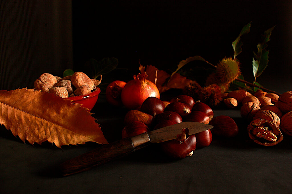 Una imagen que construye un bodegón con los frutos tradicionales del otoño cacereño, evocando los sabores, colores y texturas de la estación.