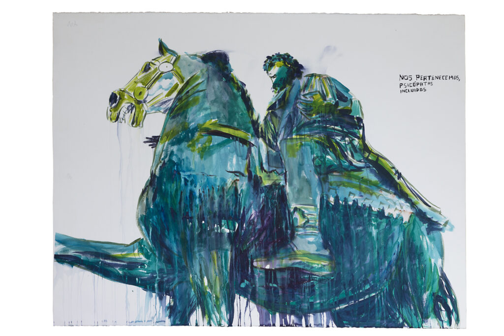 Fernando Renes por Nos pertenecemos. Pintura. Una reflexión sobre cuál es el papel del artista y su aportación dentro el mundo que nos ha tocado vivir, caracterizado una crisis de relato, de no saber el sentido de hacia dónde vamos, como si estuviéramos viviendo un crepúsculo prolongado provocado por el cambio climático, la amenaza nuclear y las disrupciones tecnológicas.